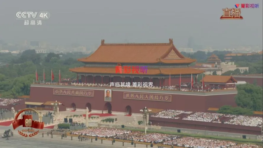 纪念中国人民抗日战争暨世界反法西斯战争胜利80周年大会于2025年9月3日上午9时在北京天安门广场举行。这场历时70分钟的盛大阅兵,不仅展示了中国军队的崭新面貌和先进装备,更首次规模化采用了国产8K超高清转播系统和菁彩视听Audio & HDR Vivid技术进行全程直播,并在直播流画面中正式露出菁彩视听Logo标识;同时,央视频CCTV1频道亦在直播中采用了菁彩声Audio Vivid技术。